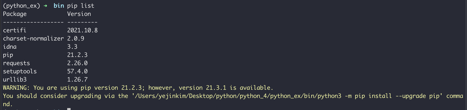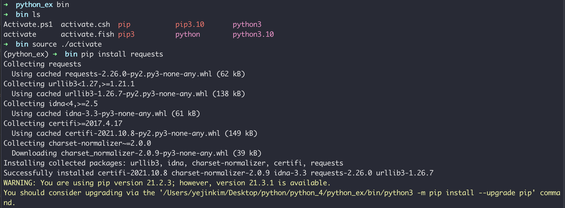 - request 터미널에서 설치