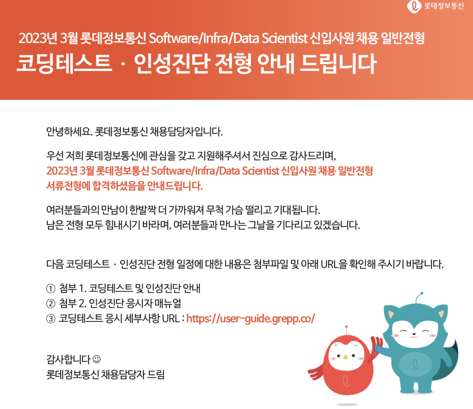 아무튼 이 이후에 인성검사까지 마무리한 뒤 롯데 정보통신 시험은 마무리됐다.