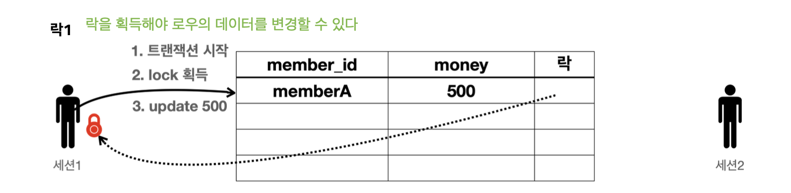 락을 획득해야 로우의 데이터를 변경할 수 있다.